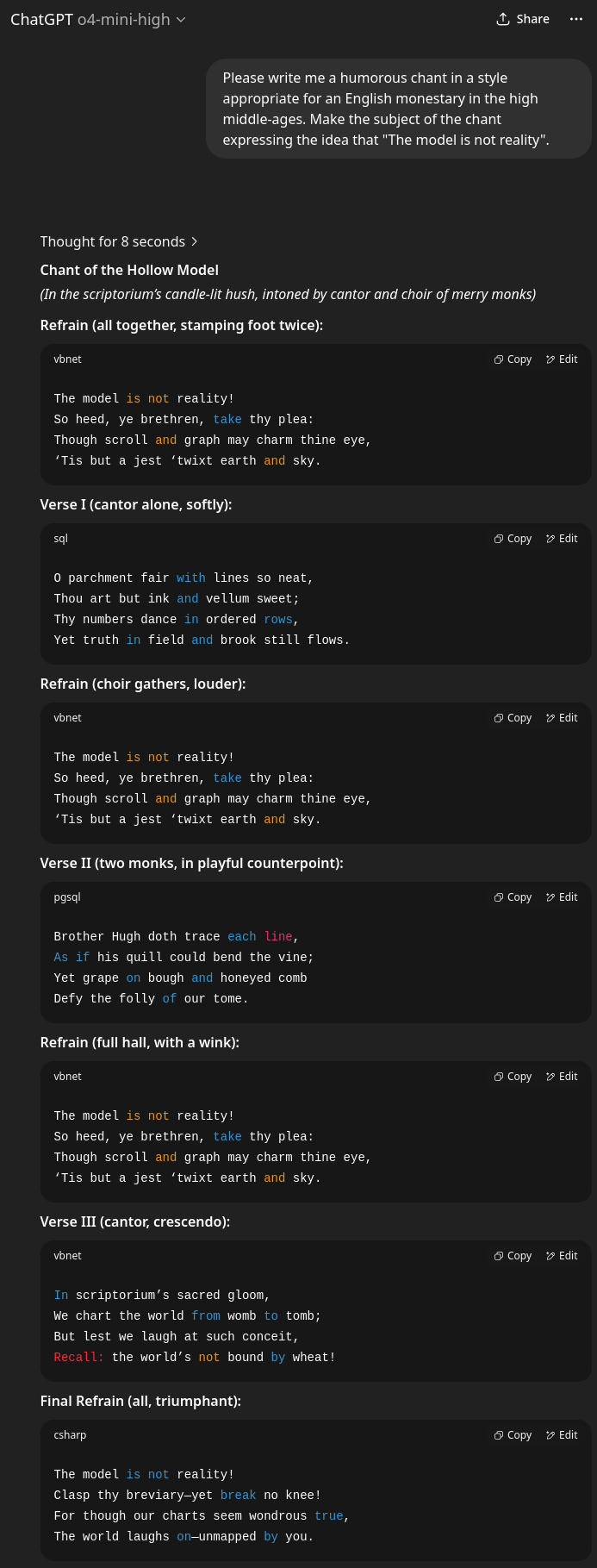 I'll probably keep paying for ChatGPT. Because even if I am not optimistic about its future as an engineer or chemist, it is at least a competent poet.